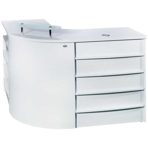 Dir Reception Desk Argento (Dir Code: 4337) This stunning curved reception desk is a welcome sight to any client entering your salon with its silver front panel. Salon Reception Desks and Waiting Chairs Help make your first impression a lasting one with a new salon reception desk and matching chairs from CCI Beauty. Salon Equipment has Salon Furniture, Beauty Salon Furniture, Manicure.